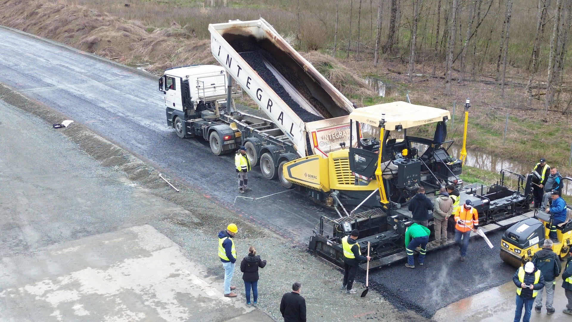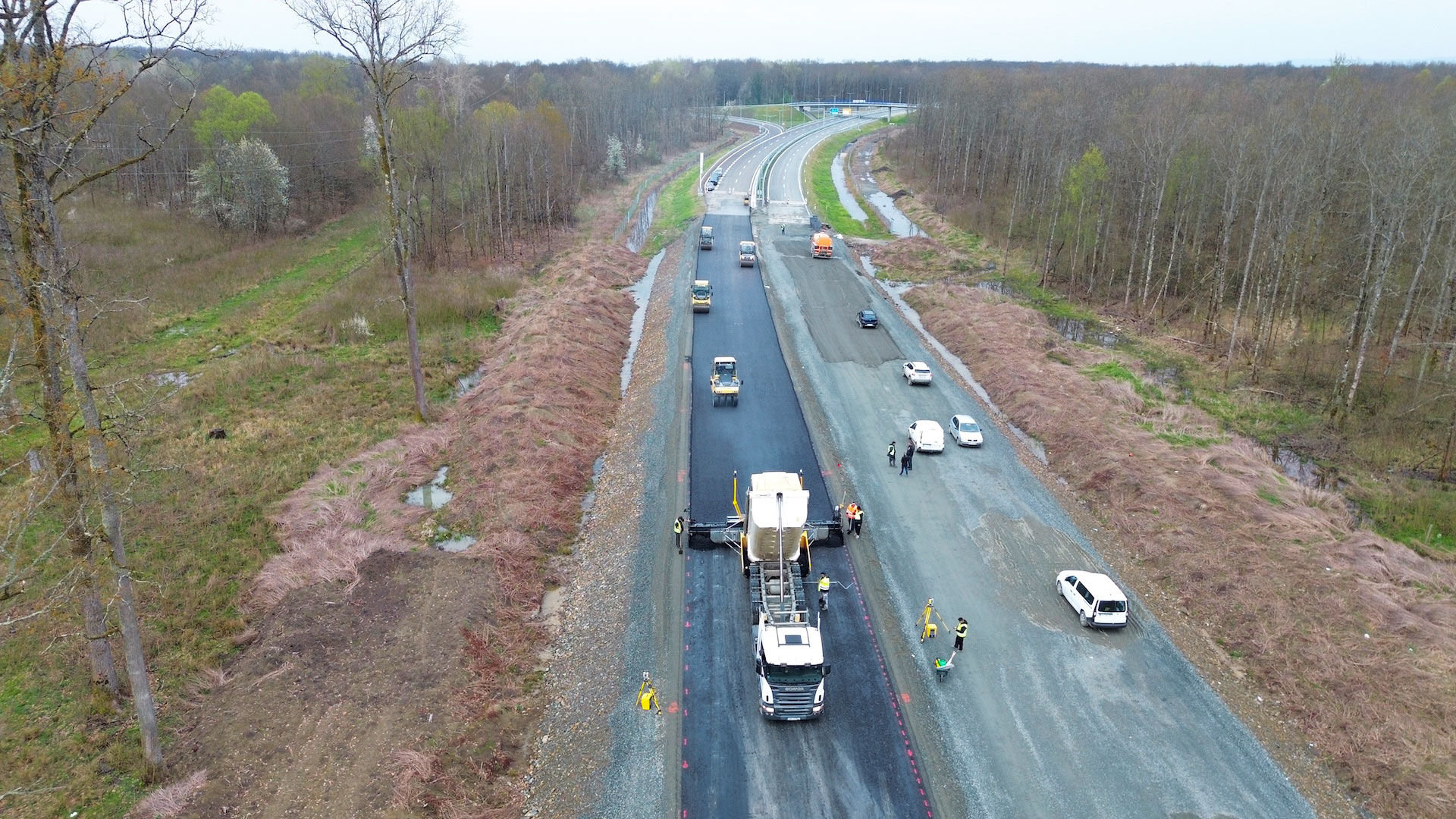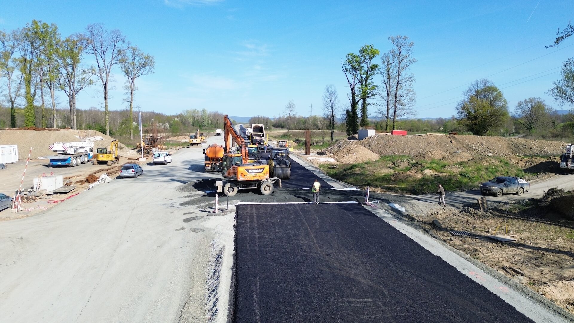 Okučani – BiH Border Expressway, Phase 3: Base Asphalt Course Being Laid