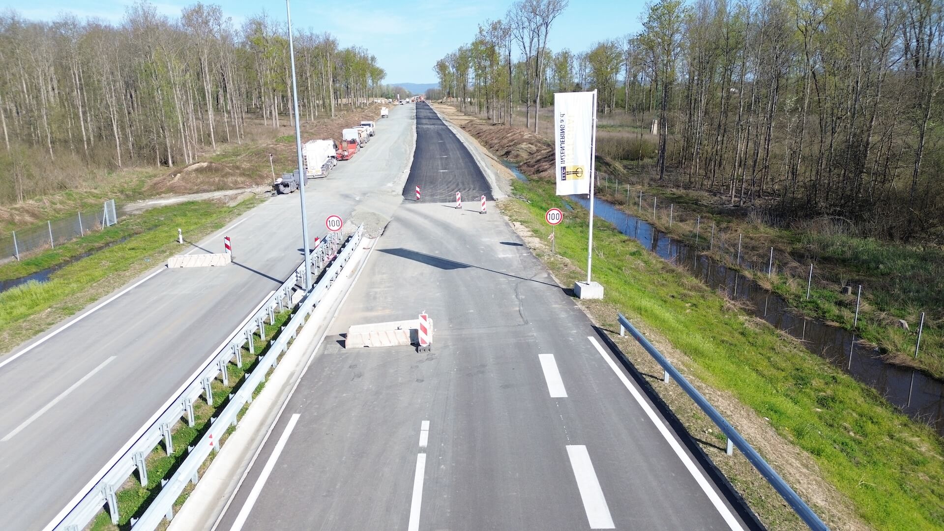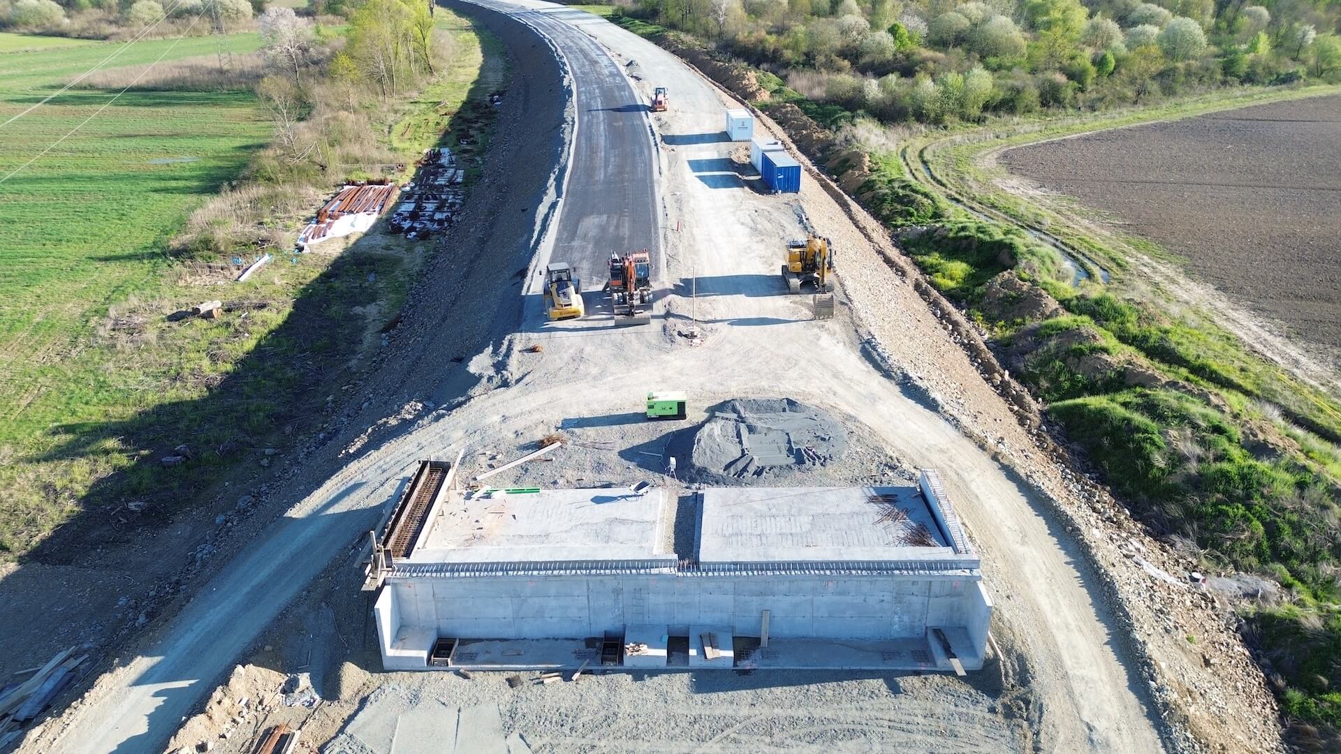 The alignment includes the “Kućište” wildlife crossing, a bridge 40 m in length for which the abutments have been completed. Steel span elements are currently being delivered and prepared for welding, after which formwork and falsework will be erected for the construction of the bridge deck.