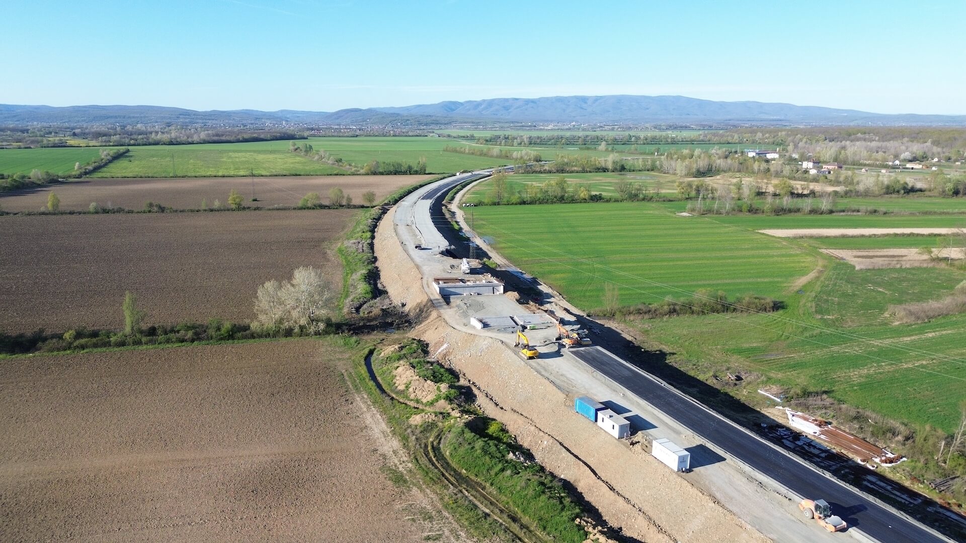 Integral Inženjering is carrying out construction works on the Okučani – Bosnia and Herzegovina border expressway, Phase 3, in accordance with the established schedule. The embankment has been completed along the entire alignment, with the exception of the interchange between the expressway and State Road DC5, the construction of which is planned for the coming period. In addition to the embankment, a mechanically compacted load-bearing layer of stone material has also been completed.